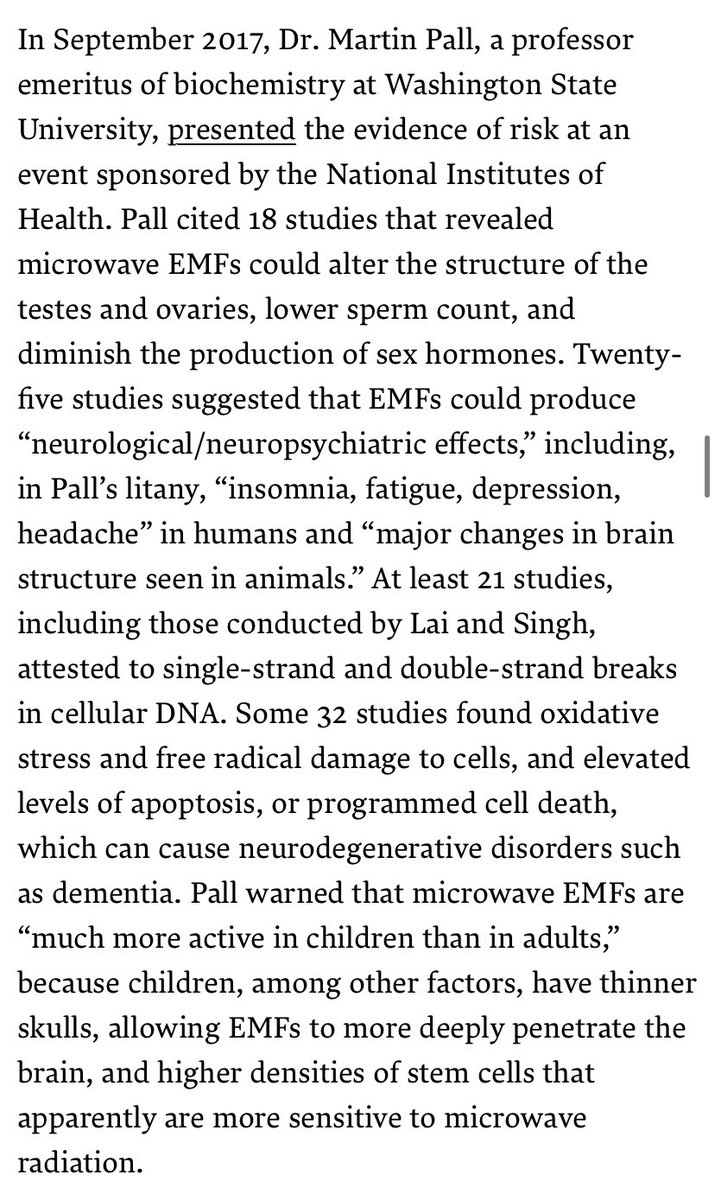 "All of these effects, he noted, occur at exposure levels 'orders of magnitude' lower than those allowed by current U.S. and international safety guidelines."