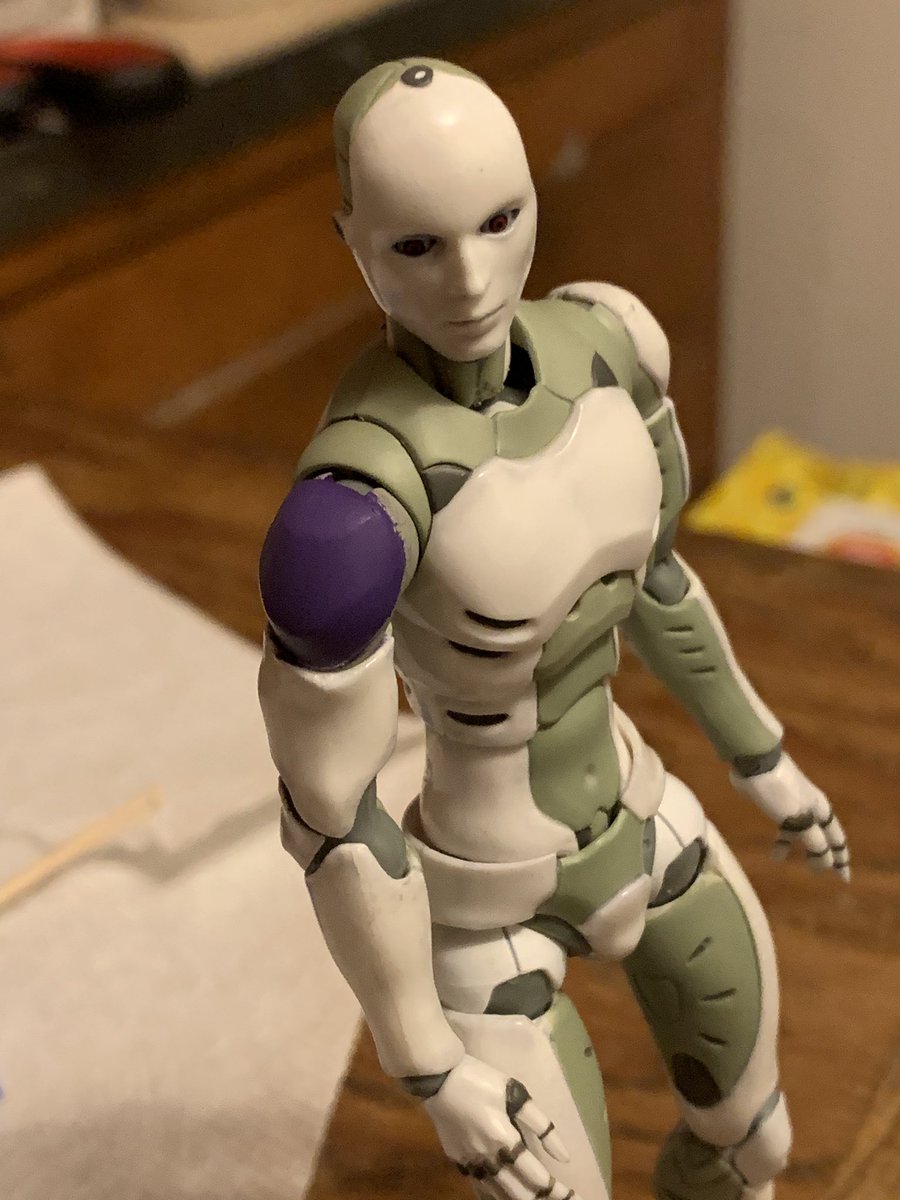 I spray painted Sigma. I wanted to add a specific shoulder color to each Synth to make them stand out more differently. Alfa will be Orange. Omega will be Blue. Sigma is purple.pic.twitter.com/jg0QW1HYva