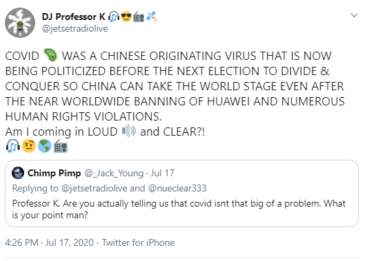 Just to let you know K isn't a covid denier and knows it's a real thinghttps://twitter.com/jetsetradiolive/status/1312049757947334656?s=21 …