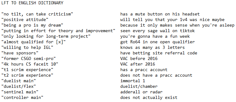 with VRLs finishing we're getting to valorant LFT season so made a helpful guide for everyonepic.twitter.com/WBIDZxjjhV