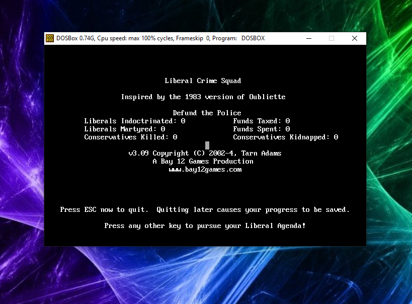 Liberal Crime Squad running in DosBox with the help of HXDOSpic.twitter.com/RvqyeV3Y7C