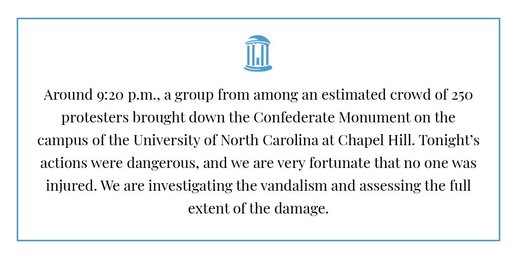 A statement about the Confederate Monument at UNC-Chapel Hillpic.twitter.com/7D45yiAAeb