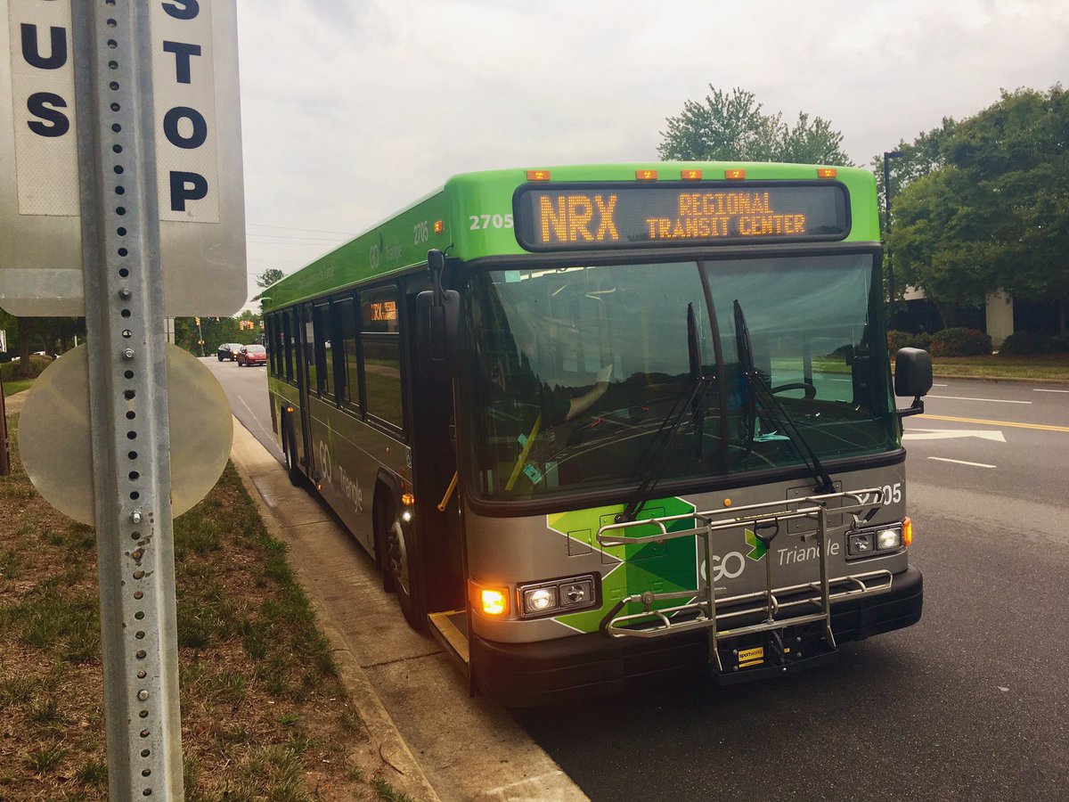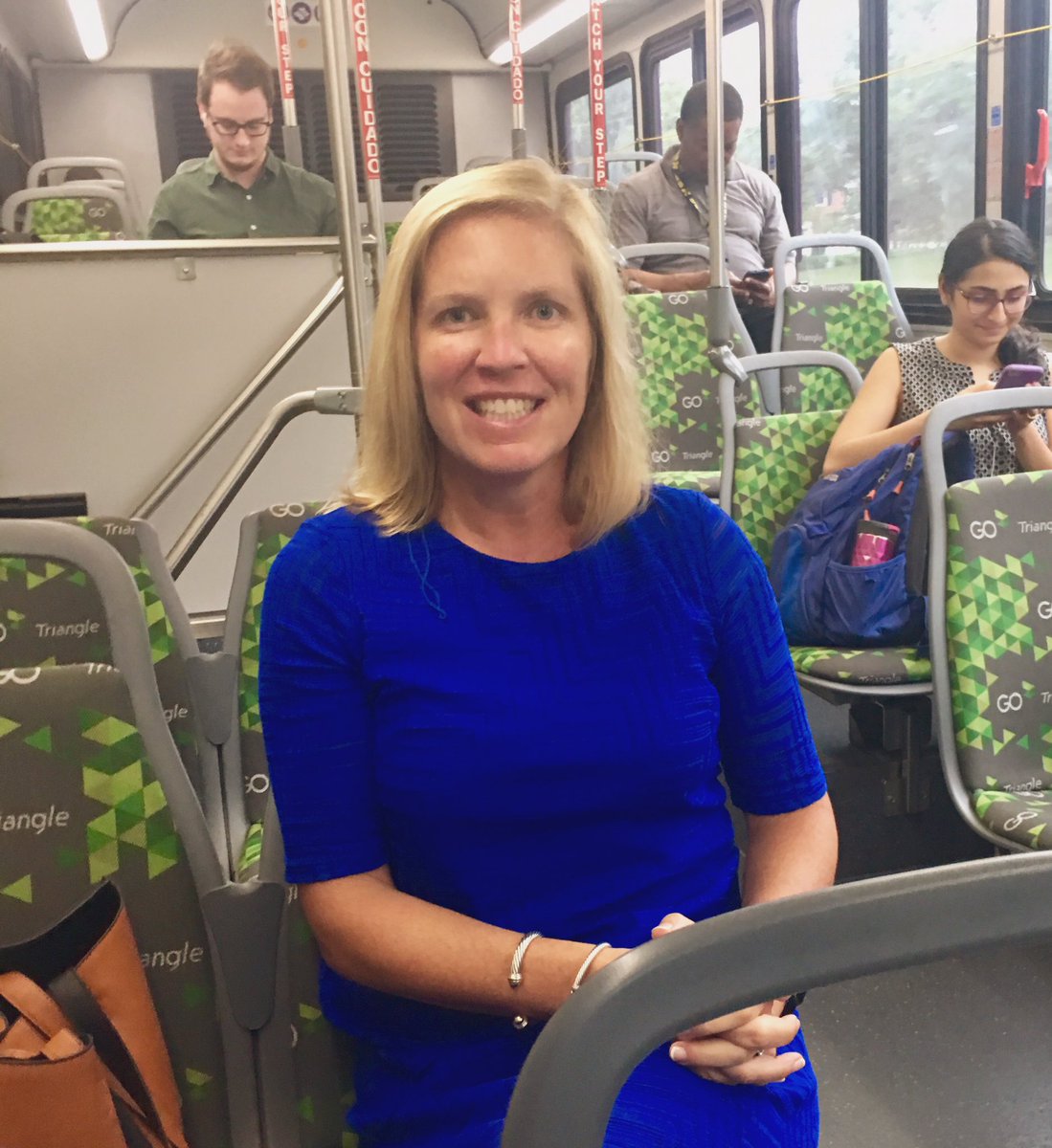 GoTriangle Interim President & CEO Shelley Blake Curran riding the new Route NRX this morning!pic.twitter.com/wmkHYgiPg2