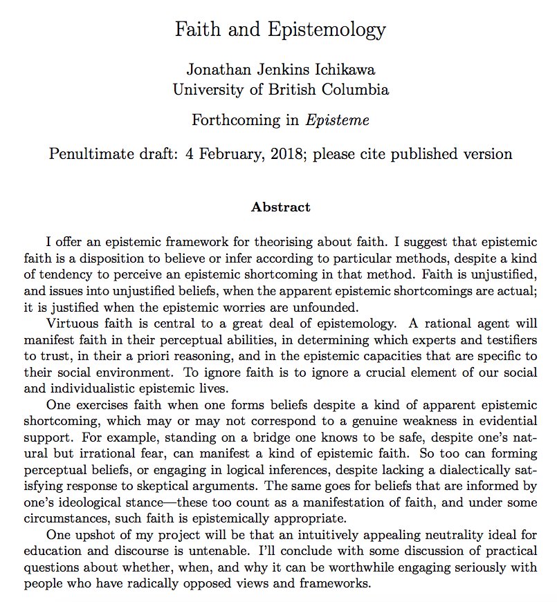 I'm very pleased to be able to announce that my "Faith and Epistemology" is now forthcoming in Episteme. This one's been a long time coming. https://philpapers.org/rec/ICHFAE pic.twitter.com/mxXCneqQjY