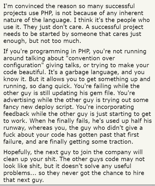 I like this HN comment about PHP https://news.ycombinator.com/item?id=12704094 …pic.twitter.com/nivxl7DoVA
