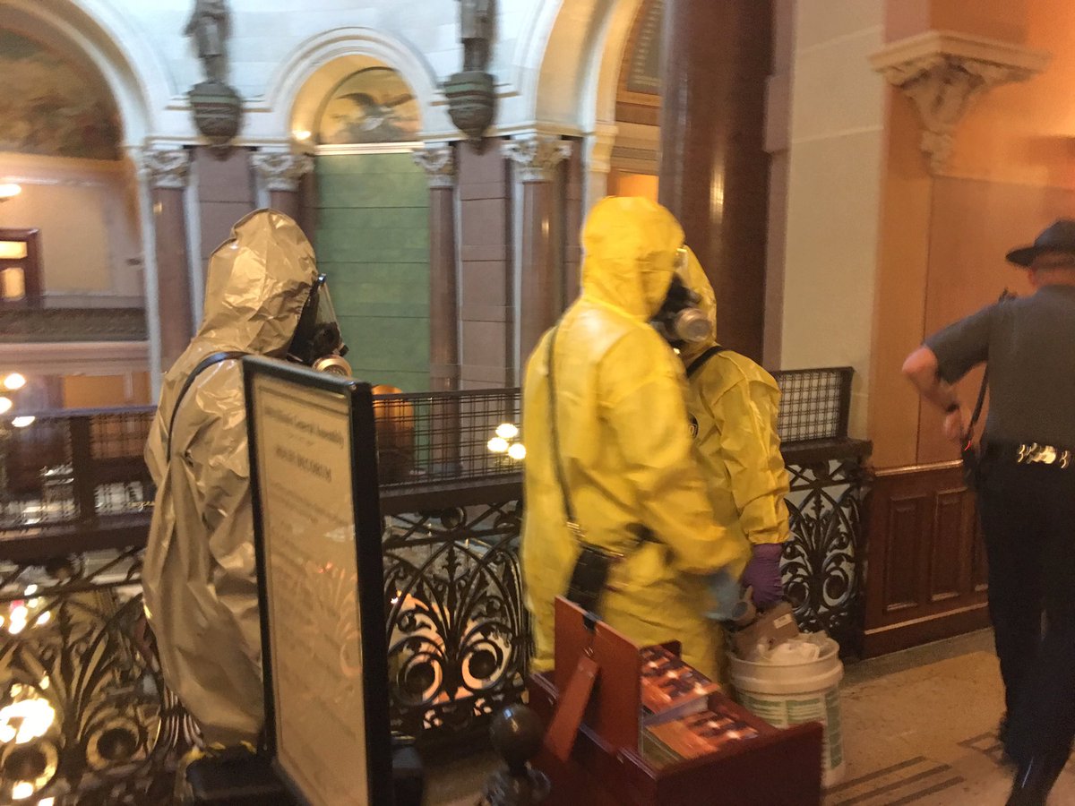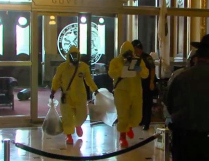 Hearing unconfirmed reports from lawmakers that the person who threw the substance threw it in multiple places, not just gov's office.