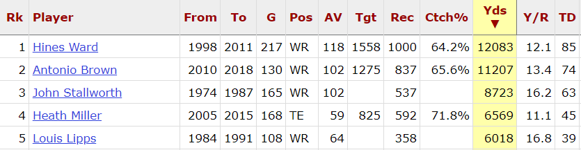 @steelers career leader in receptions, receiving yards and touchdowns.#HereWeGo