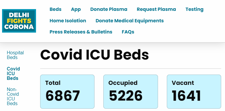 COVID-19 in India COVID-19 ICU beds in Delhi 76% and decreasing every day They went from 99% to 76% in eight days without increasing the capacity. 🙌🙌🙌🙌🙌pic.twitter.com/AYzKbvpC2q