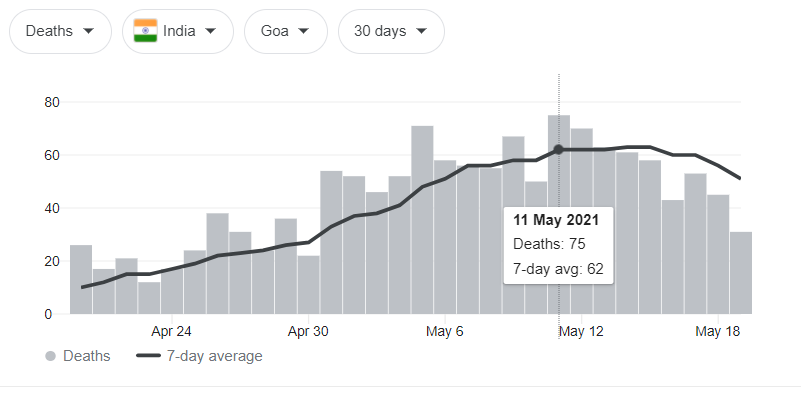 What a turnaround in Goa, India! May 11: 75 deaths (peak) May 19: 31 deathspic.twitter.com/RoME52vfhp