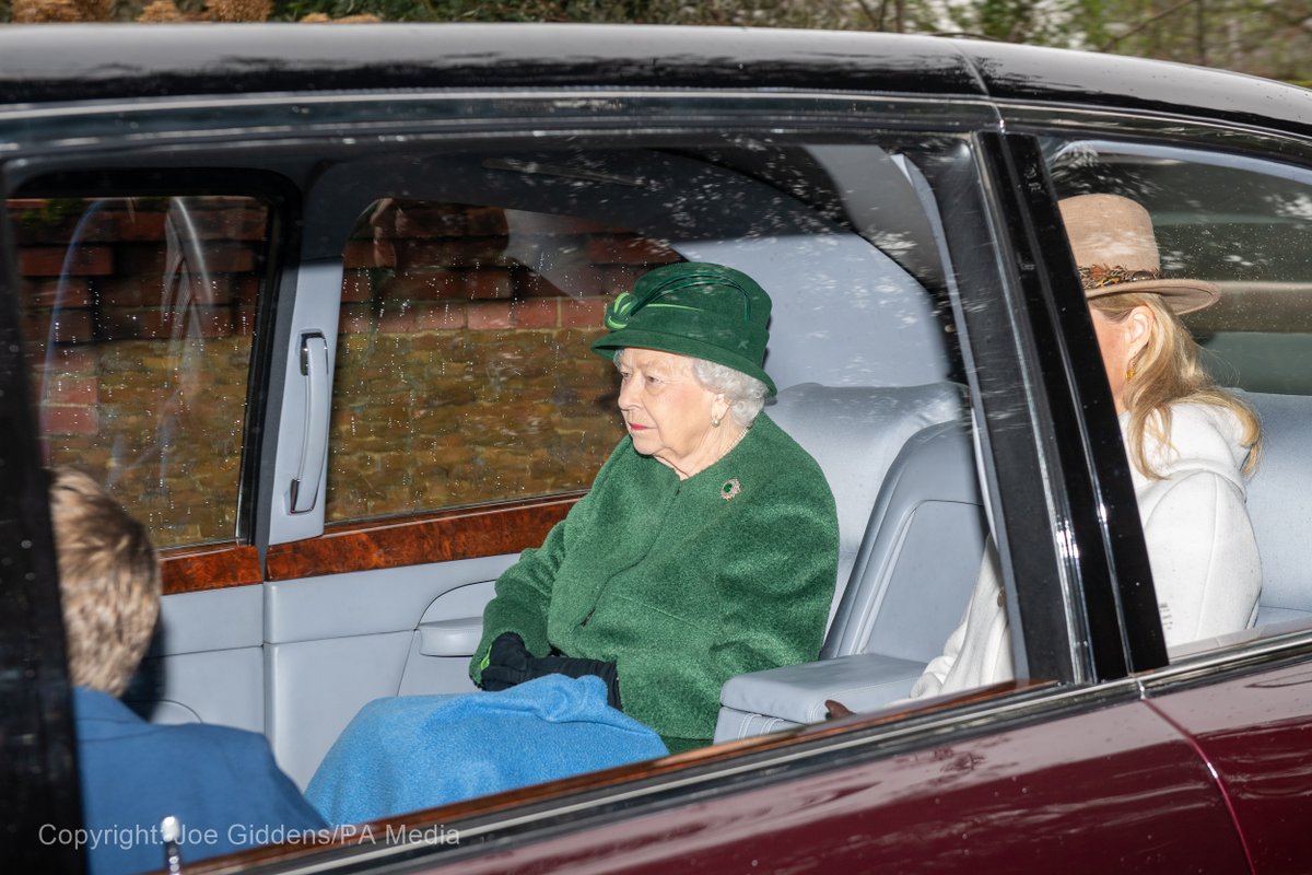 Queen Elizabeth II arrives with the Countess of Wessex to attend a morning church service at Sandringhampic.twitter.com/X3pOVKlD8P