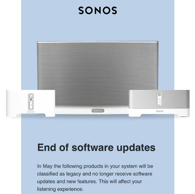 @Sonos - you give me this? Not acceptable. You will have to make a software version that continue to support basic usage of "old" Sonos units. They're just 5-7 years old!?pic.twitter.com/7usZcwcYQC
