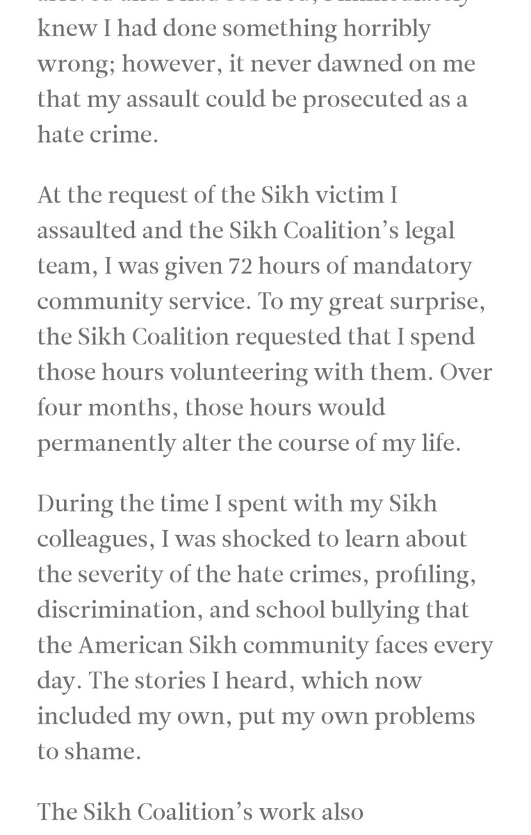 I oversaw the community service of a white man who had committed a hate crime against a Sikh man, on a 9/11 anniversary. He had physically assaulted him. He was so nervous about the program, thinking we would treat him with hostility. We showered him w/ love. This was the result:pic.twitter.com/eatgVCrwHL