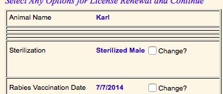 Renewing Karl’s dog license. I feel like someone didn’t think through the option to change his status of sterilization.pic.twitter.com/FexF4od6M8