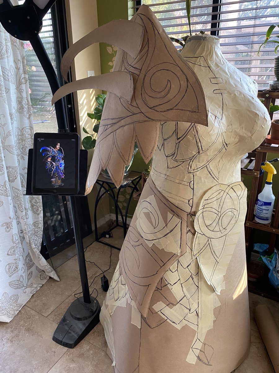 Pretty much done rough patterning the main pieces. Just the gloves and helm to go. I have a dr appt tomorrow so I may go get fabric while I’m out but hopefully I’ll get the patterning finished as well.pic.twitter.com/Ok0EvXBLTc