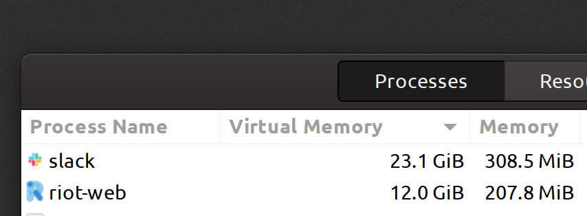 @SlackHQ@RiotChat you are chat apps..!! Do you *really* need this amount of virtual memory?? Hardware gets better and software developers get lazier..pic.twitter.com/7OpoNaETc6