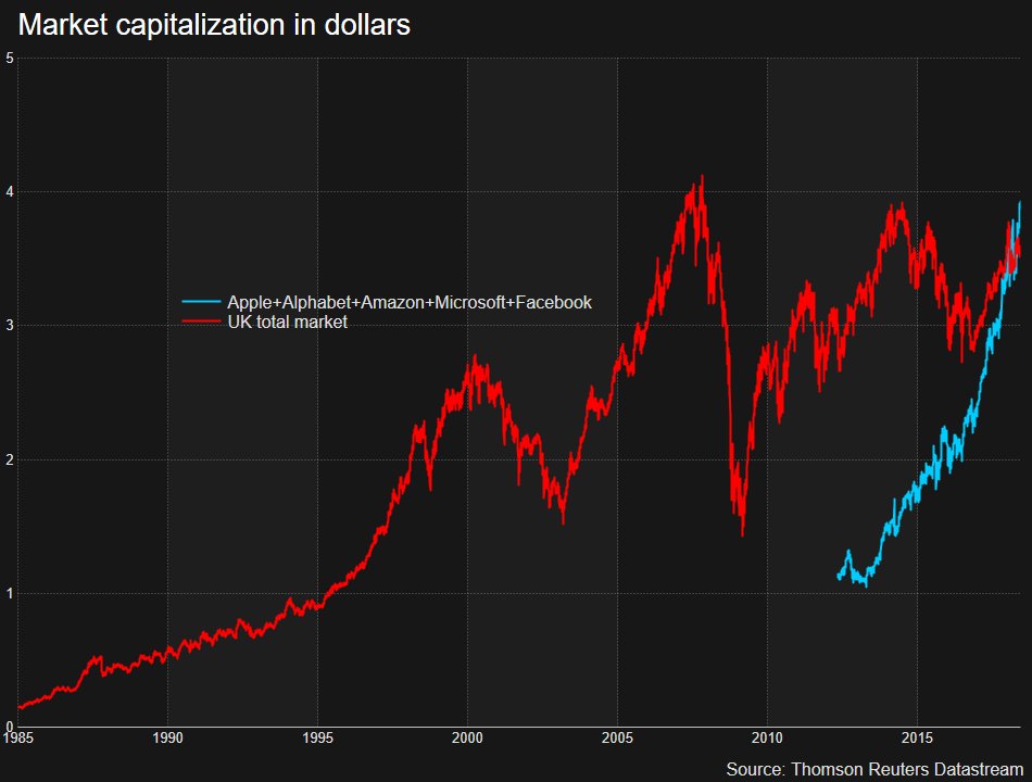 Five US stocks combined now worth more than entire UK stock marketpic.twitter.com/jFzrLJ55Ml