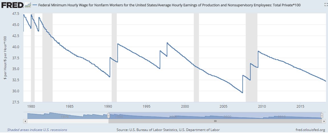 US minimum wage in two charts: 1. Good news: near-record low % of hourly-paid workers on min wage 2. Bad news: min wage close to lowest % of average hourly pay on record.pic.twitter.com/zUf595Jfsp