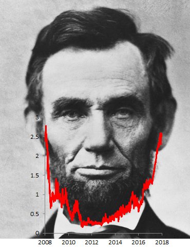 Perfect Lincoln's Beard formation, or Shenandoah, in the 2-year US Treasury yield. Clear market timing signal. h/t