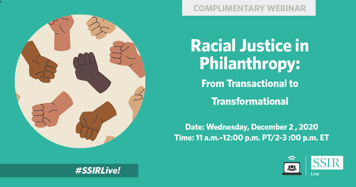 #SSIRLive!, challenge your perspective during the “Racial Justice in Philanthropy” webinar on Dec. 2. Leaders from@thelibrafound,@msfoundation, &@WStatesCenter will discuss#foundation responses to racism & privilege. Reserve Your Comp Seat Now: https://bit.ly/RacialJusticeinPhilanthropy …pic.twitter.com/nKK1Wjj2Lz