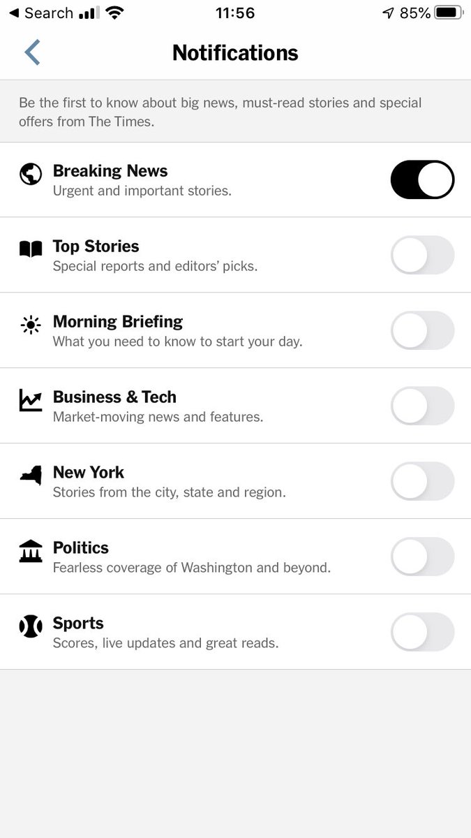 @nytimes your app is sending me push notifications about the impeach and that’s definitely not urgent breaking news. Note I’ve unselected politics.pic.twitter.com/1bjF49aB3y