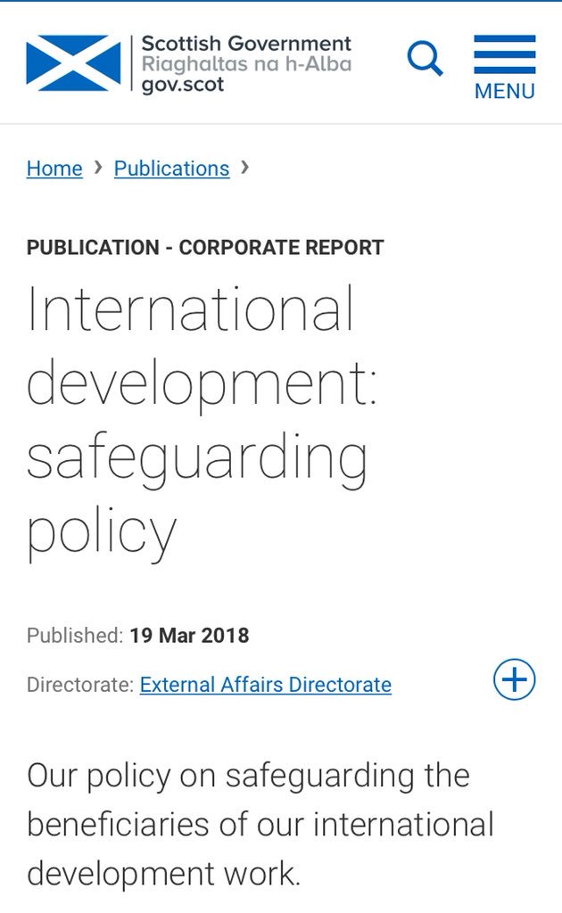 #safeguarding policy, which sets out our expectations on the standards from those we fund to provide services to those people and communities who look to our support at their time of greatest need: https://beta.gov.scot/publications/safeguarding-policy/ …@alasdairallan 1/2pic.twitter.com/GkkBjla21H