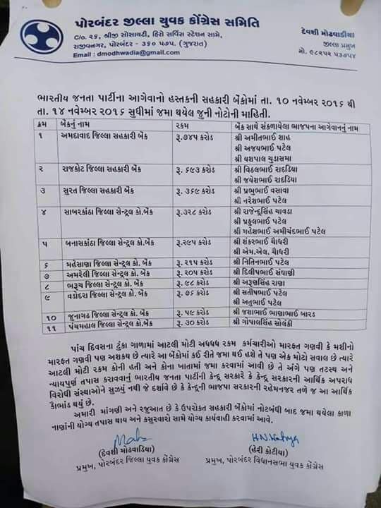 Amit Shah's Rs 745 crore ADC Bank demonetisation scam grows to Rs 3000 crores involving 18 Gujarat BJP leaders including Dy CM Nitin Patel, Shankar Chaudhary. 11 banks where 18 BJP leaders are chairman/directors have changed Rs 3113 crores worth of old currency in to white money.pic.twitter.com/AMLxzUVW6O