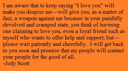 For more by & about Jody: announcements, personal remembrances, never-B4-published stories, free novels & exclusive content not available anywhere else in the known universe, join our mailing list. http://jodyscott.info/subscribe