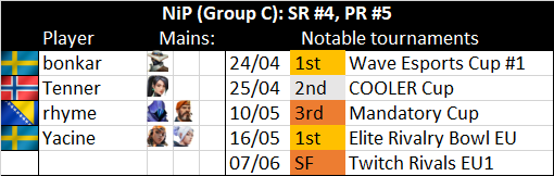 NiP: org picked up 08/04(!), core from Paladins WC team (bonkar/Tenner). Yacine a breakout star, prob best pure rifle player in Europe. most of lineup still technically on trial - expecting still to see Yacine/rhyme for Epulze, but fifth is TBA as it stands (Zyppan -> FABRIKEN)pic.twitter.com/8zo4qWSwXm