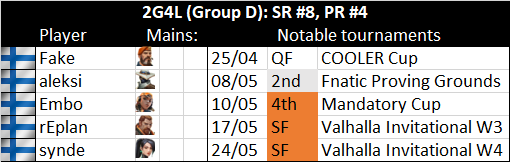 2G4L: core of Finnish ex-B1944 pros, came out of the gate well but missed a couple of big tournaments, up-and-down against weaker fields. team play is good but have struggled w/ firepower exc. Replan. v. important test for them here. second big tourney w/ new entry rifler Embo.pic.twitter.com/GEdYMKeWmm