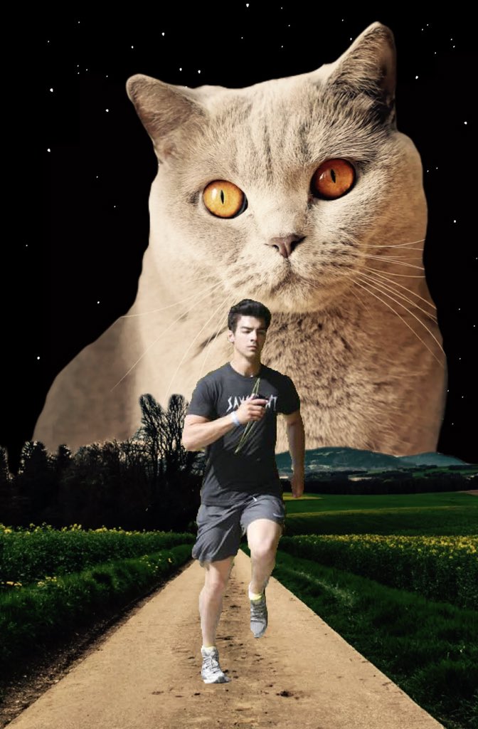 @joejonas welcome Joe having a good time running while cat is looking him so funny