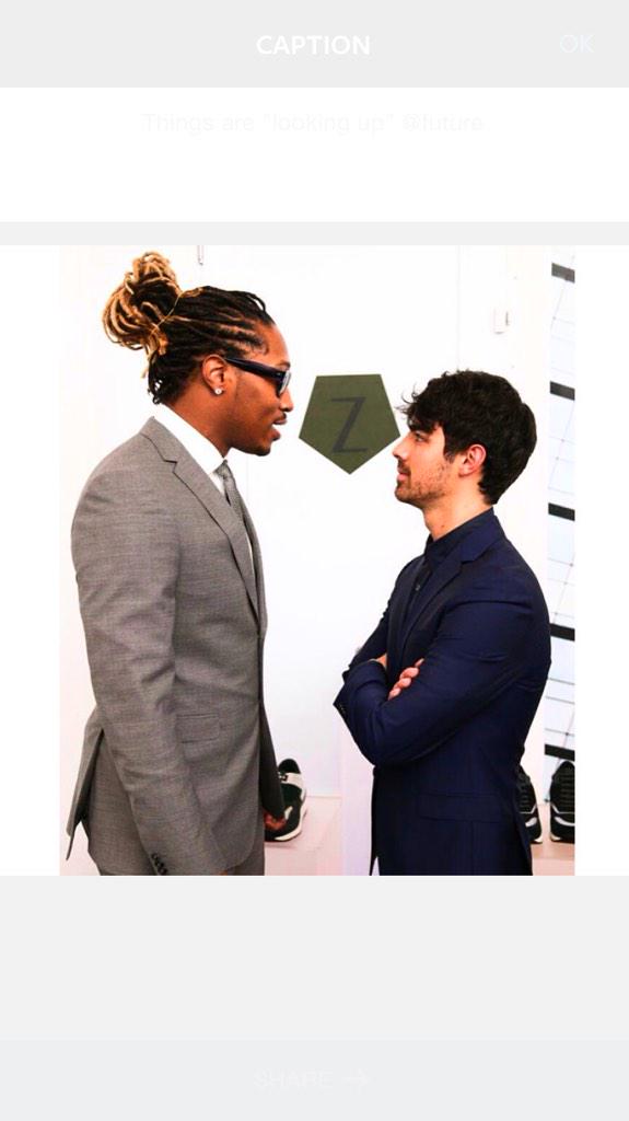 @joejonas: Things are "looking up"@future ... Good times with@zegnaofficial pic.twitter.com/7E6depE6dM” Nice hair