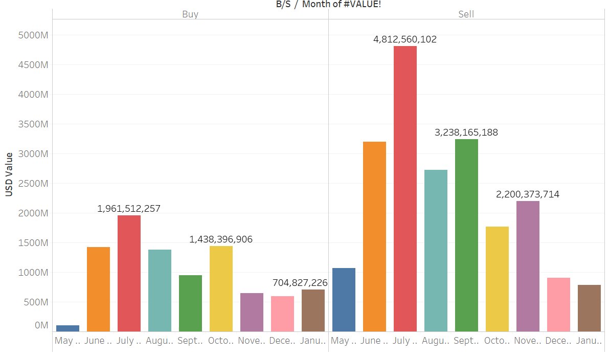 Sorry, my black and red graphs are scary so here's a more colorful graph looking at how much people lose. Do note that a lot of the positions may have been hedged so actual figure may be way lower. (smh, should have added a unicorn emoji to graph)