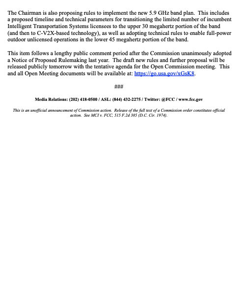 #5G, the@FCC then announces that it is moving forward on its 5.9 GHz proposal. More innovative uses for spectrum to come from this FCC’s already stellar track record.https://twitter.com/EvanS_FCC/status/1321193408598282249 …