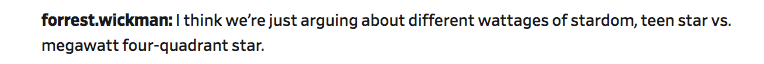 (Also, though, so much of this comes down to the fact that we all have different thresholds for things like "star." I've had the most impenetrable arguments over whether someone counts as "famous" or not, because we don't agree on what "famous" means.