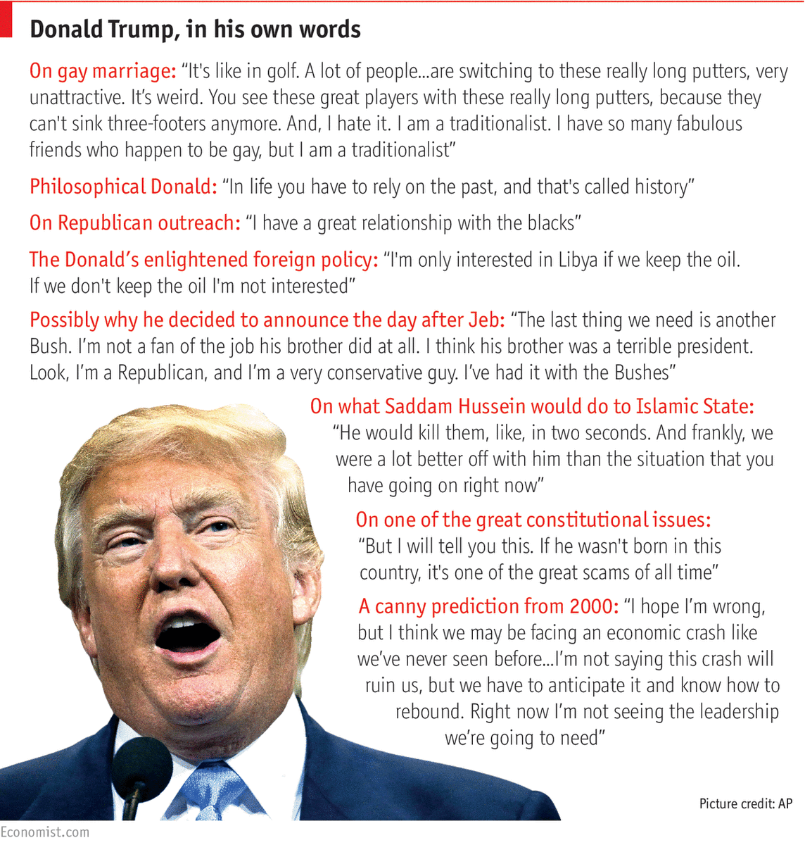 What might we expect from a President Trump? We think the quotes speak for themselves http://econ.st/1RhmnZF pic.twitter.com/mQ5ooLWsya