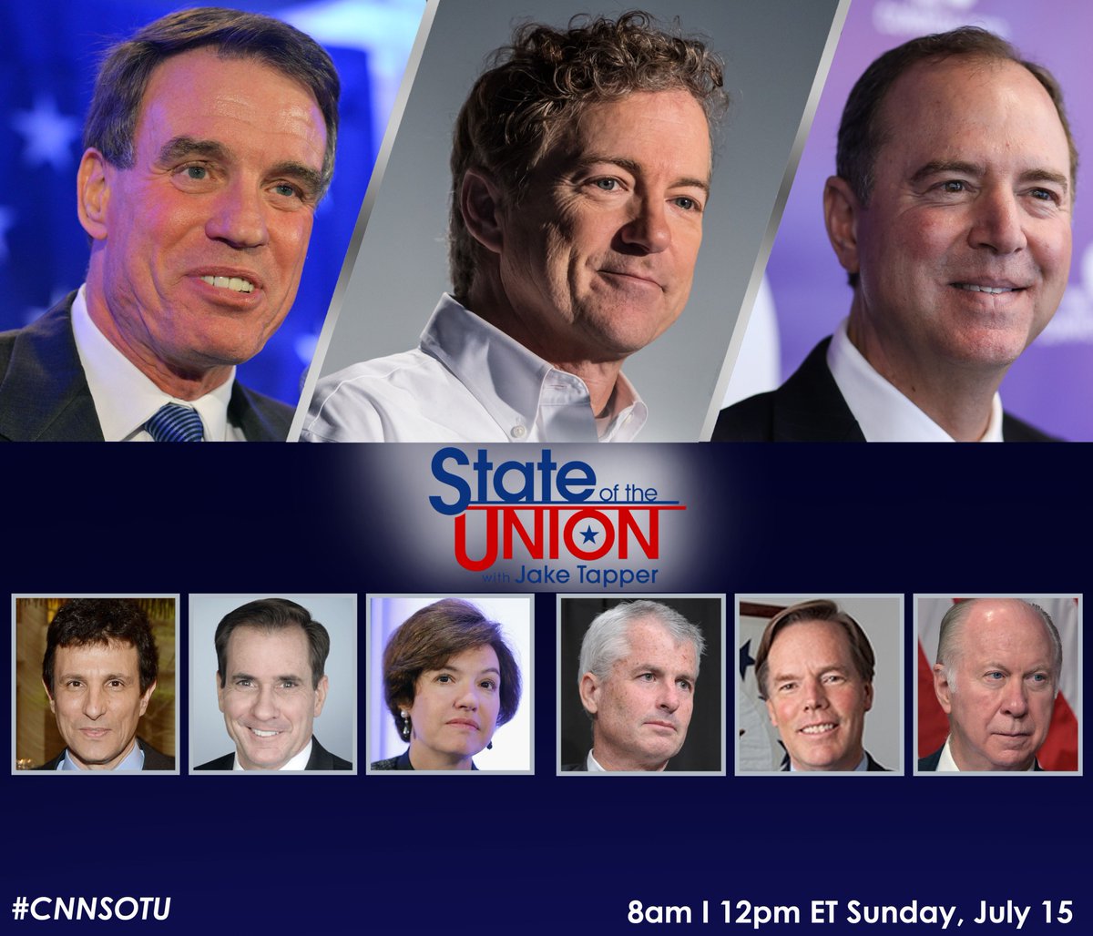 #CNNSOTU w/@JakeTapper, from Helsinki:@RepAdamSchiff,@RandPaul,@MarkWarner,@sbg1,@johnfkirby63,@David_Gergen,@rnicholasburns, Phil Mudd, & David Remnick! Tune in STARTING AT 8AM on@CNN,@CNNi,@SIRIUSXM Channel 116 & http://cnn.com/GO .pic.twitter.com/Og6bd4hIz6
