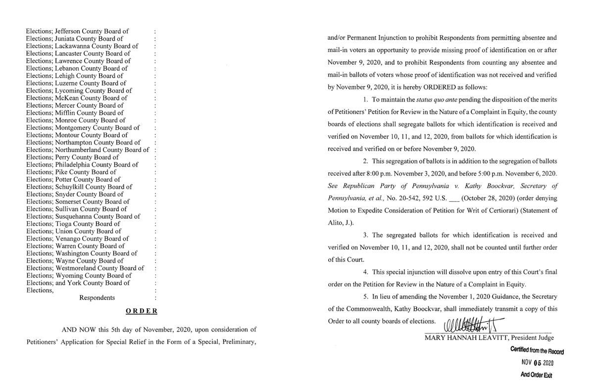 🚨BREAKING: Trump campaign notches WIN in PENNSYLVANIA state court The court, at Trump's request, issues interim order to election boards to (a) set aside certain mail ballots that lack identifying info for the voter, and (b) not count those votes until after ct rules furtherpic.twitter.com/B8EMKF246Z