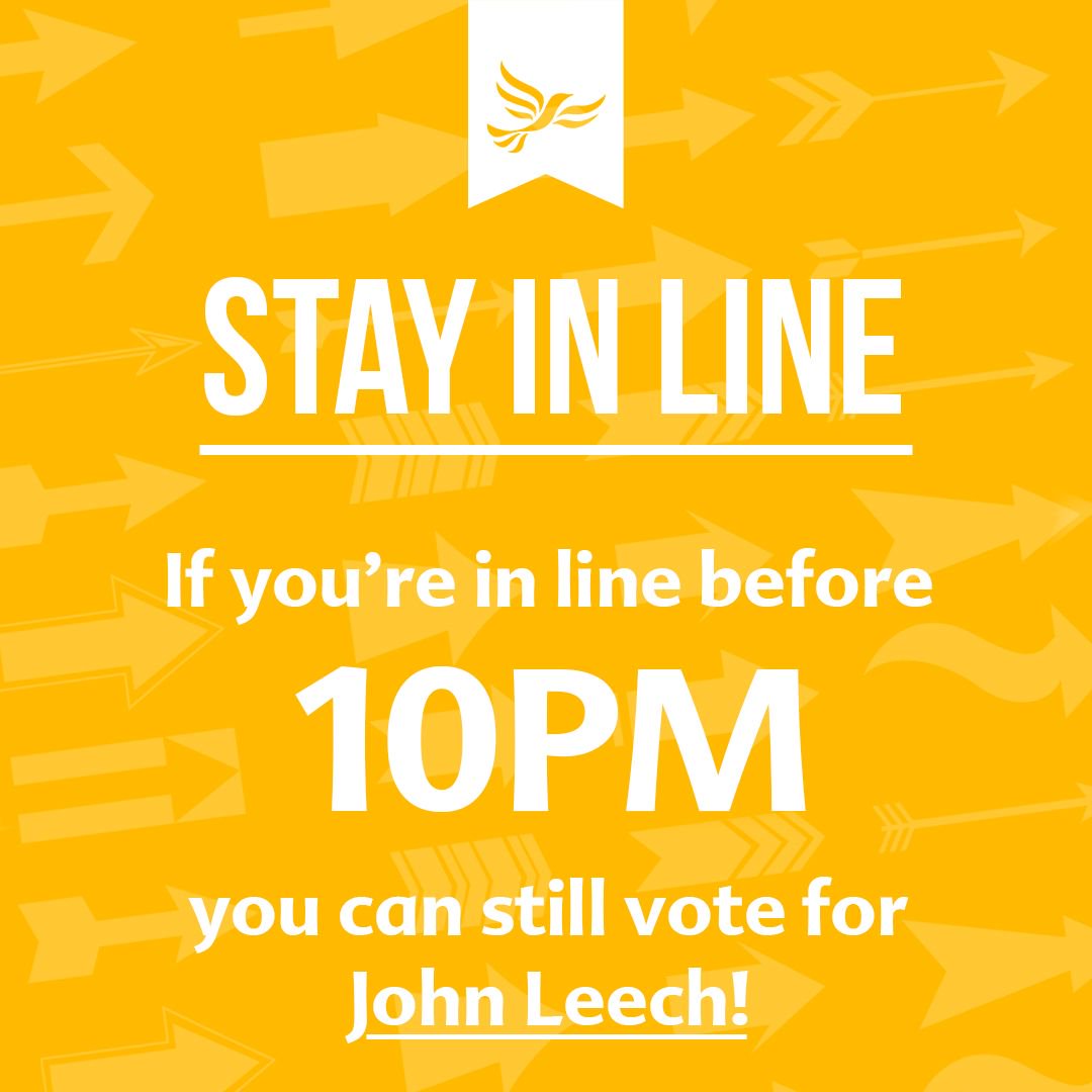 Don't leave the queue! As long as you're in the line before 10pm you can still vote! Let's change the direction of our country, tonight!pic.twitter.com/5hh57is9Xv