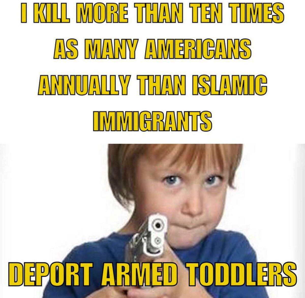 toddler find a gun & accidentally kill someone. Since we can't possibly get rid of the gun, lose the toddler.