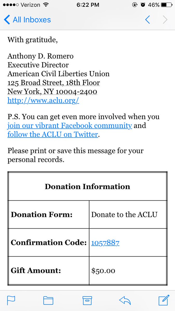 I'm inspired by all who are barely scraping by yet still giving monthly to the @ACLU.