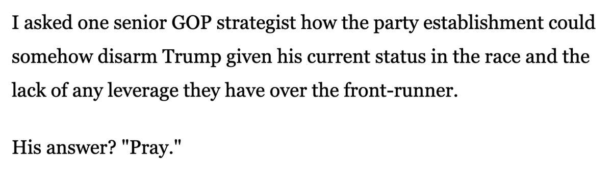 Read @BrendanNyhan on why Democrats don't want Sanders to win but won't attack him. The parallels to the 2016 Republican primary are impressive. Let's review!