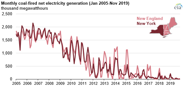 As coal ends in New York and New England, gas is just climate problem in the 7-state region. Coal is now less than 1% of electricity generation in New England and NY. NY will close its last coal plant in 2020. Offshore wind will be major way to cut gas. https://www.eia.gov/todayinenergy/detail.php?id=42716 …pic.twitter.com/j9vUeu9tUd