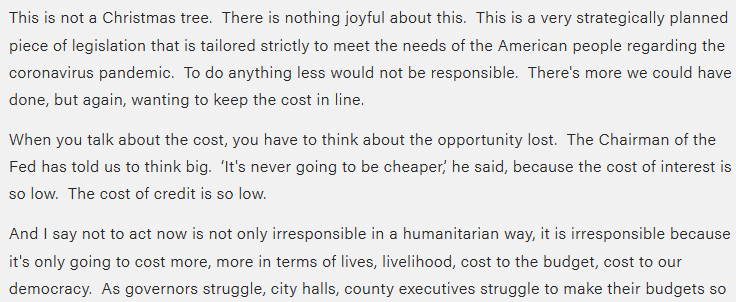 Pelosi says the Heroes Act was "tailored strictly" to meet people's needs and it would have been "irresponsible" to do less, then concedes the bill could have done more but it would have cost too much, then says not spending aggressively will cost more in the long runpic.twitter.com/4KYnFfAW0f