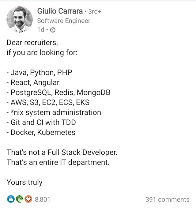 Not sure who needs to hear this: At my first job as a programmer, my initial impression was, “holy shit I can’t believe I’m getting paid to learn all this” My second thought was, “what if they find out” 15 years later, still getting paid to learn.