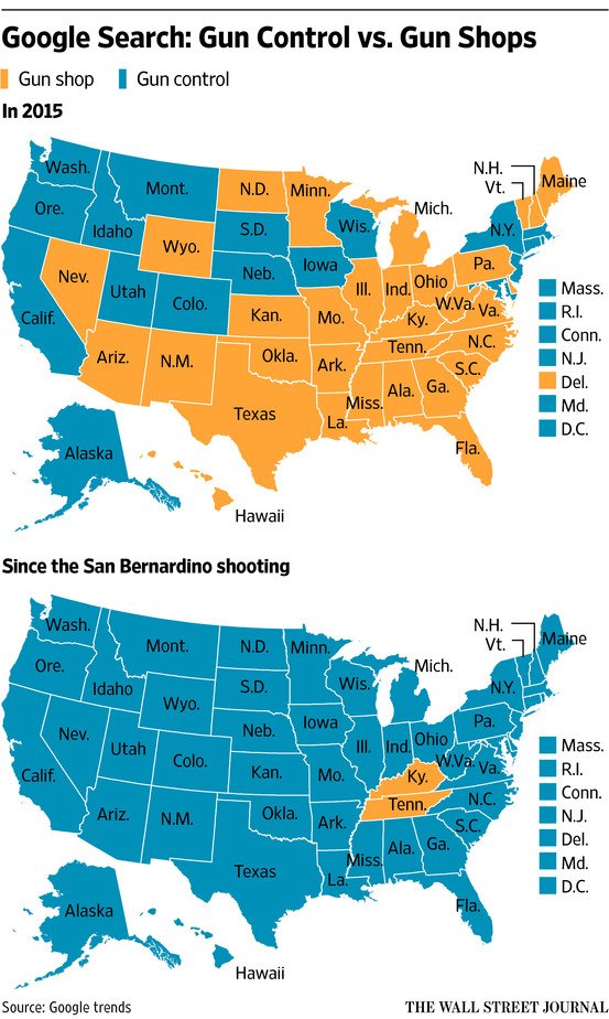 Googling "gun control" overtakes "gun shop" after #SanBenardino shooting http://on.wsj.com/1HIAFE5 via @WSJPoliticspic.twitter.com/k1r76uw1hU