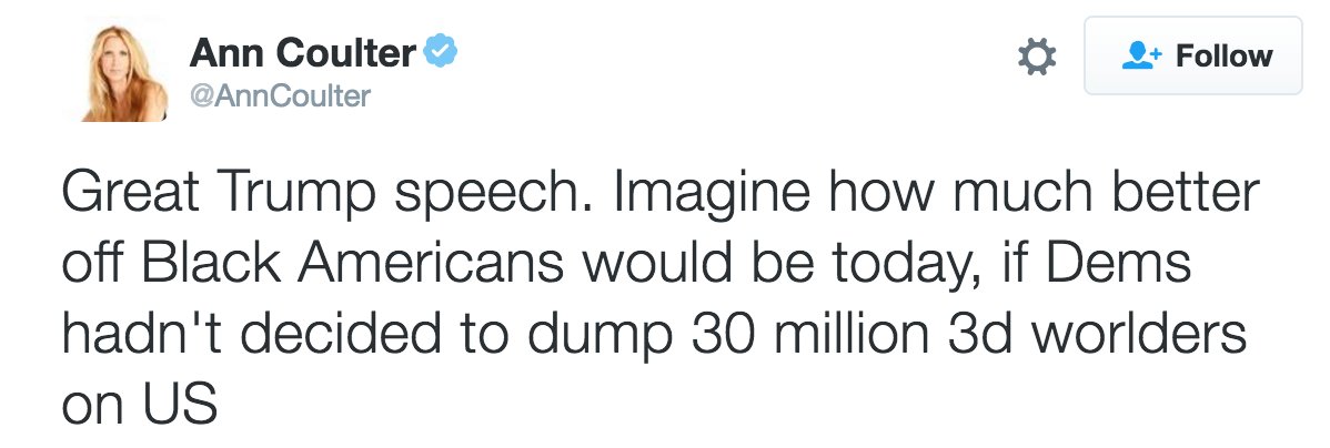 @CathyYoung63@AnnCoulter it's called a quote.Thanks. Twitter will use this to make your timeline better. UndoUndo