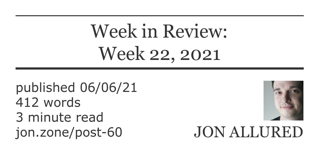 Week in Review: Week 22, 2021 => https://www.jonallured.com/posts/2021/06/06/week-in-review-week-22-2021.html …pic.twitter.com/hJBSafvXcb