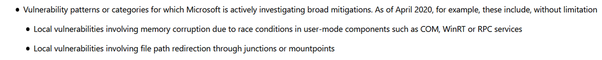 @msftsecurity changed the scope of the Windows Insider Preview to exlcude path redirection and race condition memory attacks.pic.twitter.com/CVoQvIcV6N