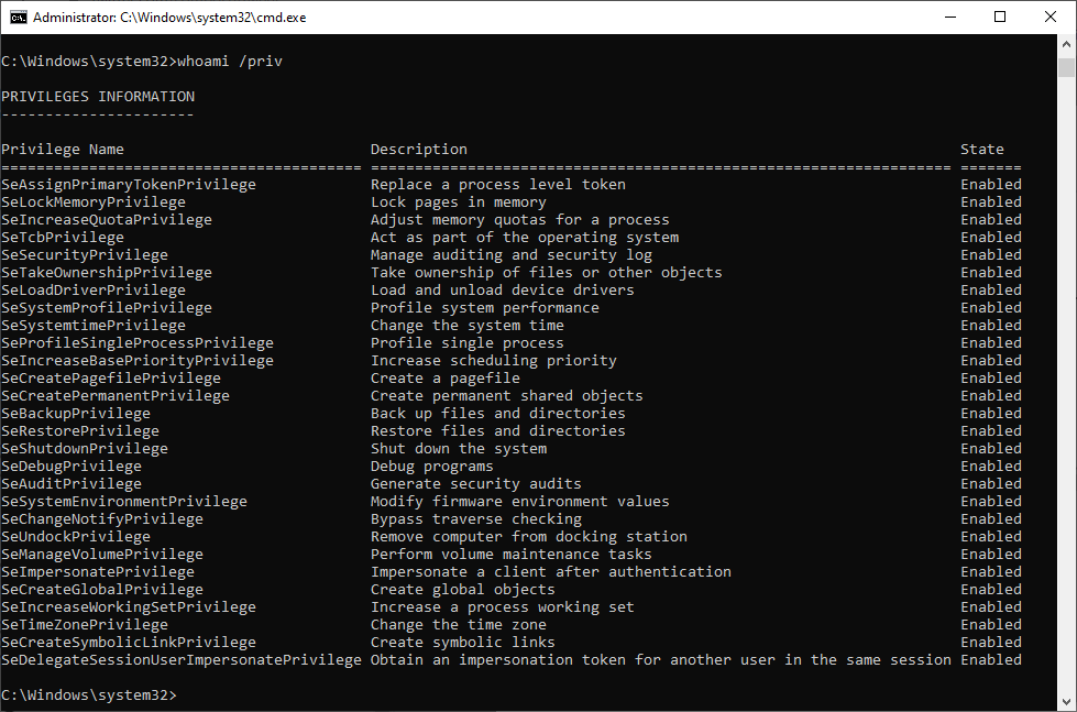 Bonus info: When the shell is launched some of the privileges are disabled:pic.twitter.com/sOa5IFxhIO