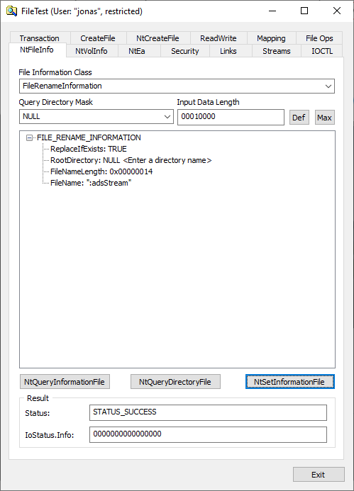 If a file is renamed to :adStream its primary noname data stream is renamed to adStream and a new empty primary data stream is created. Requires same permissions as normal delete(a rename is a delete and create)- GENERIC_ALL/DELETE/(MAXIUM).pic.twitter.com/VON6eWpYcr